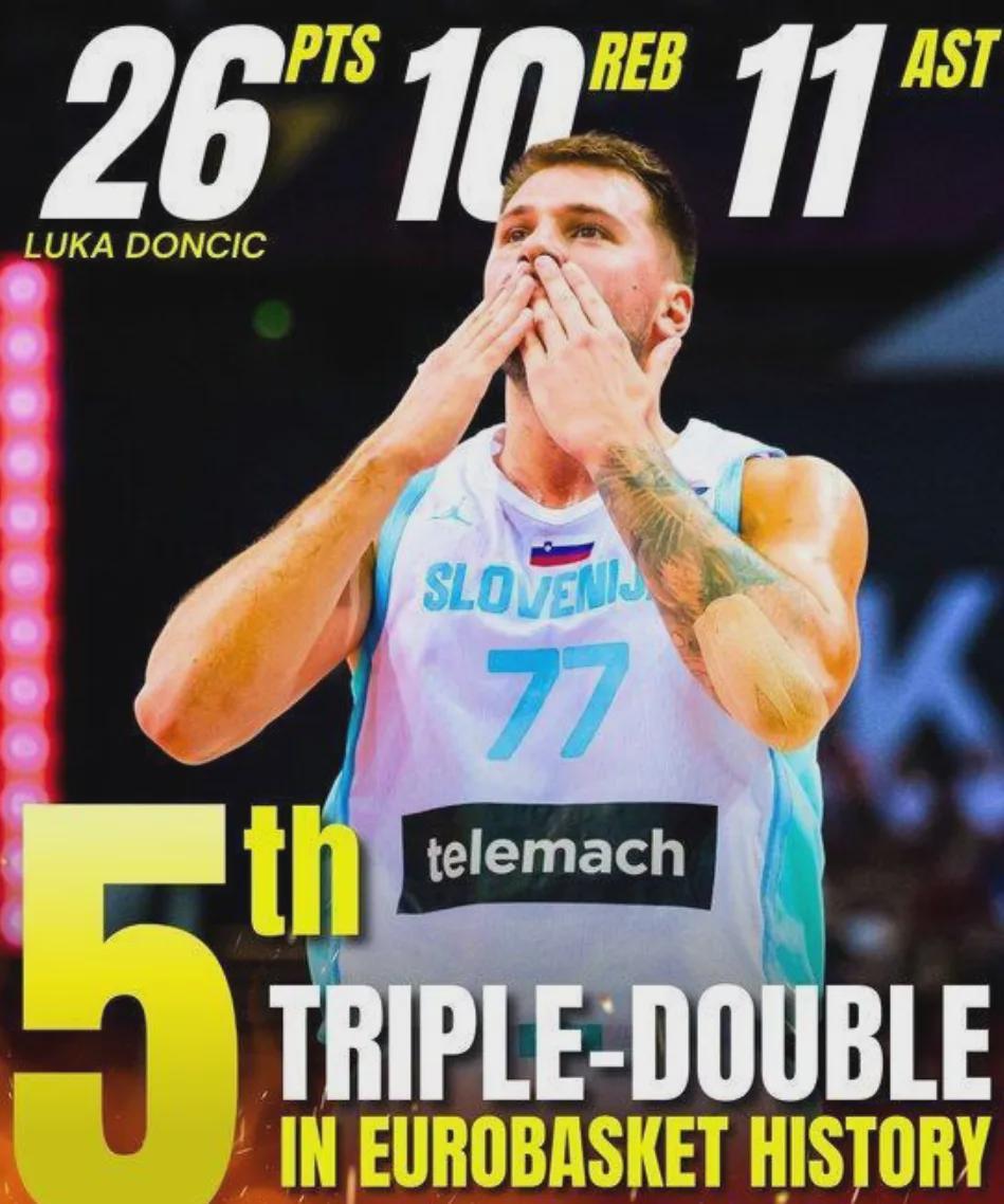 斯洛文尼亚男篮终于赢球了,东契奇砍下26分10篮板11助攻3抢断,率队击败比利时男篮,拿到了本届欧锦赛上的首胜,自己也成为欧锦赛史上第5位单场贡献三双数据的球员。